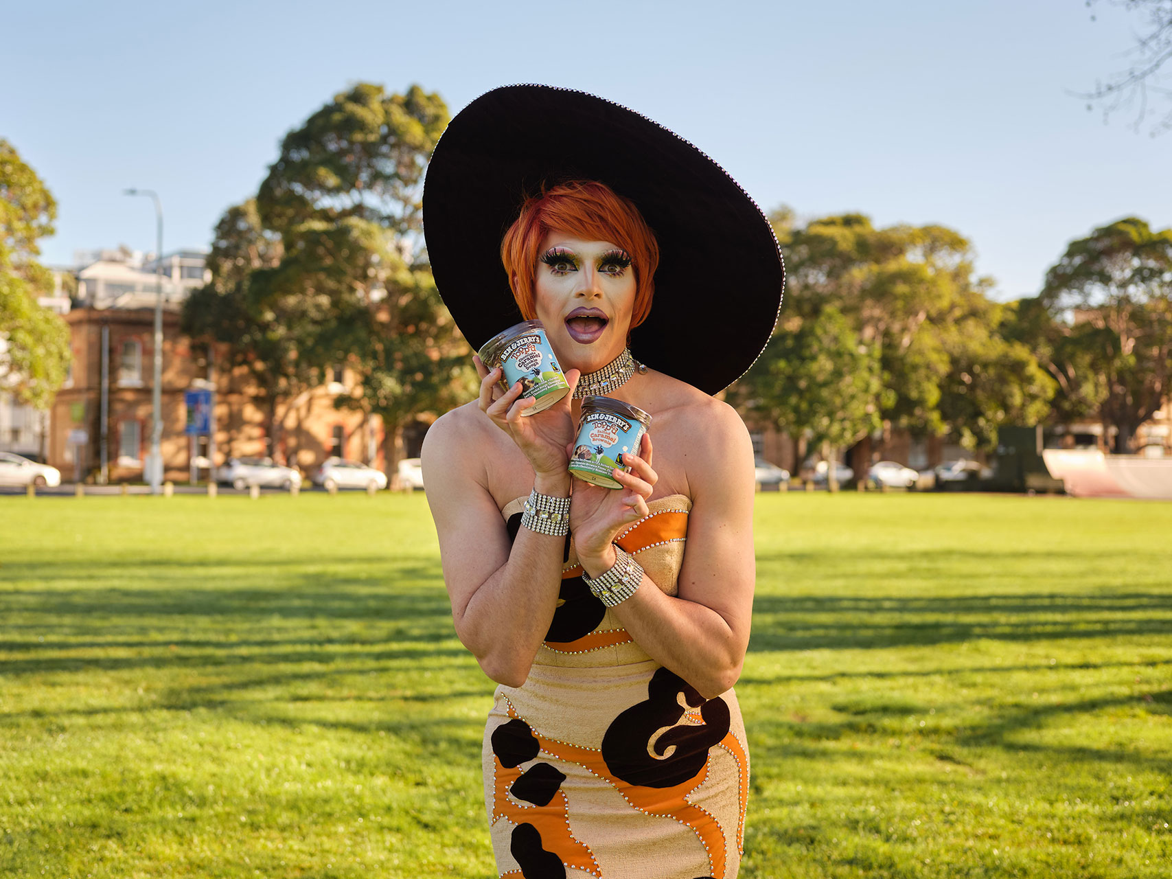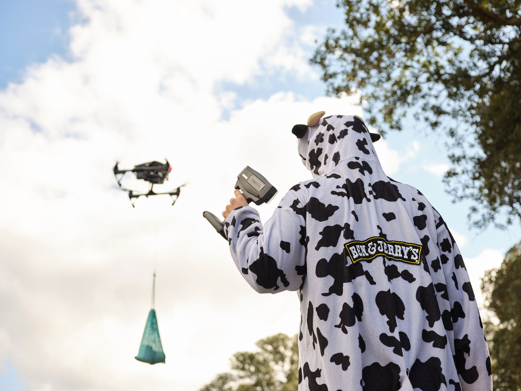 We played on the over-the-top characteristics of the ice cream, partnering with drag queen, Elektra Shock, who wore a custom Ben & Jerry’s Topped dress and drag look, to deliver the delicious treats to influencers and media. But due to COVID restrictions, deliveries had to be contactless. Our solution? Deliver them in the most over the top way possible, via drone!